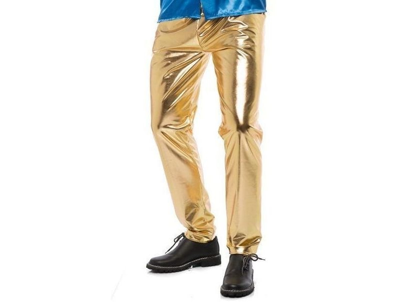 NewL Herr guld metallisk glänsande rave nattklubb shorts komfort träningsbyxor disco dans fest elastiska byxor, Guld, L