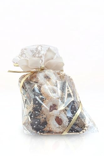 Italpak Genomskinliga påsar med sötsaker, Kakor, Godis, Gåvor, Julsäckar, Polypropylen, Vit/Guld, 25 x 40 cm, 50 enheter
