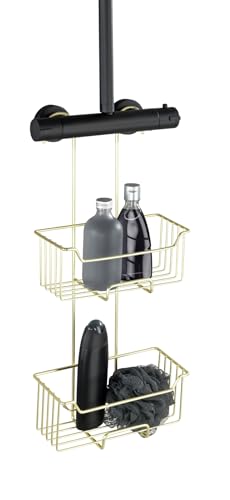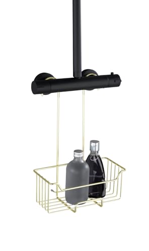 WENKO Termostatdusch-Caddy Mod. Milo, duschhylla för att hänga på kranen, hylla i rostfritt stål (rostfri), 25 x 36 x 14 cm, guld