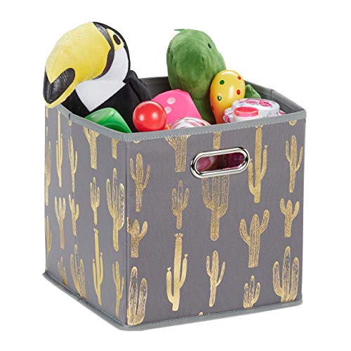 Relaxdays Vikbar, förvaringslåda kvadratisk, HBT: 29 x 28,5 x 28,5 cm, för hylla, organiseringslåda utan lock, grå/guld