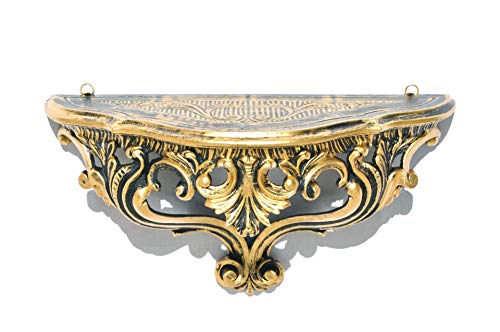 LIGUORO SHOP Hylla i venetiansk barockstil vintage falsk shabby chic konsol 38,5 x 20 x 15,5 cm (svart/guld)