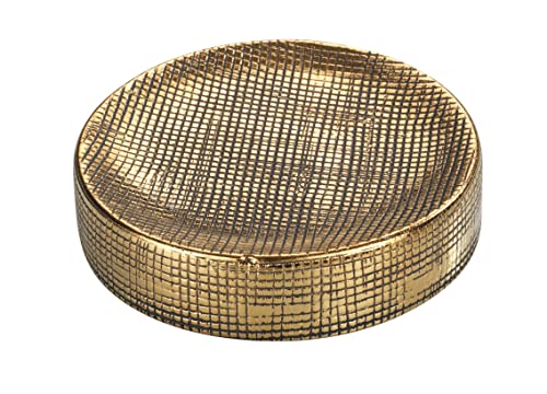 WENKO Tvålkopp Rivara, tvålkopp för förvaring av handtvål, hylla av högkvalitativ keramik, elegant gulddekoration, perfekt för badrum och gästtoalett, handmålad, Ø 10 x 2,5 cm, guld