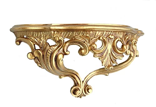 Generisk väggkonsolkonsol, hylla, guld, barock, antik, retro, 38 cm x 20 cm x 15,5 cm, vägghylla (guld) 83 K
