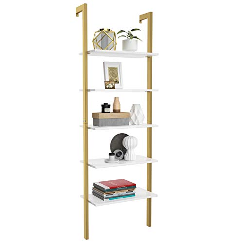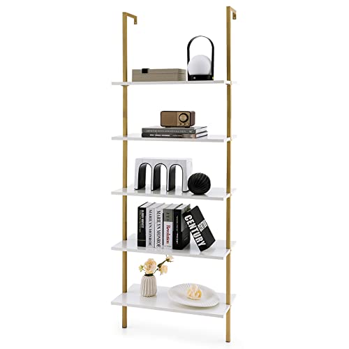 COSTWAY Steghylla med 5 nivåer, stående hylla, bokhylla med metallram, trapphylla, för kontor, kök, vardagsrum, 61 x 30 x 183 cm (guld)