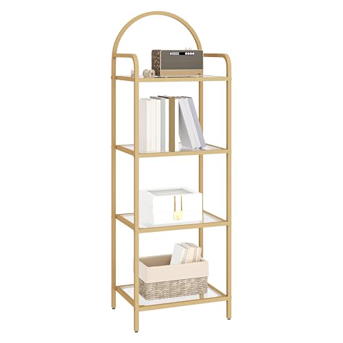 Hzuaneri Bokhylla Bokhylla, Bokhyllor I Härdat Glas, Smal Hylla För Sovrum, Badrum, Hemmakontor, Stålram, 4 Nivåer Guld BC04001G