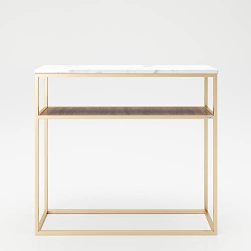 Playboy Skänk med hylla, skänk/konsolbord med metallram i guld, hylla i valnötdekoration och mamorutseende, retrodesign, entré, vardagsrum, lounge, sovrum, matsal