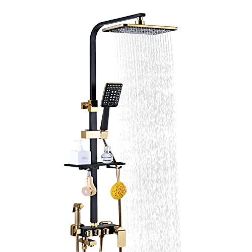 Regndusch duschset handdusch svart guld duschblandare 75–120 cm duschsystem pelare duscharmatur med hylla krok