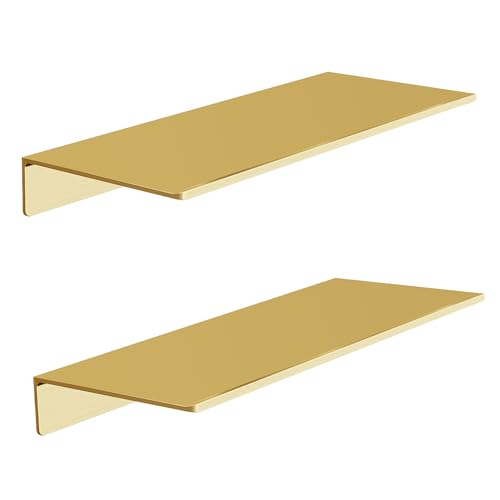 HNVNER Vägghyllor i metall, set med 2, borstad guld flytande hylla, 30 cm dekorativ hylla för foton, samlarföremål, vaser, prydnadssaker, hantverk, trofé, etc. Duschhylla, LX30J2
