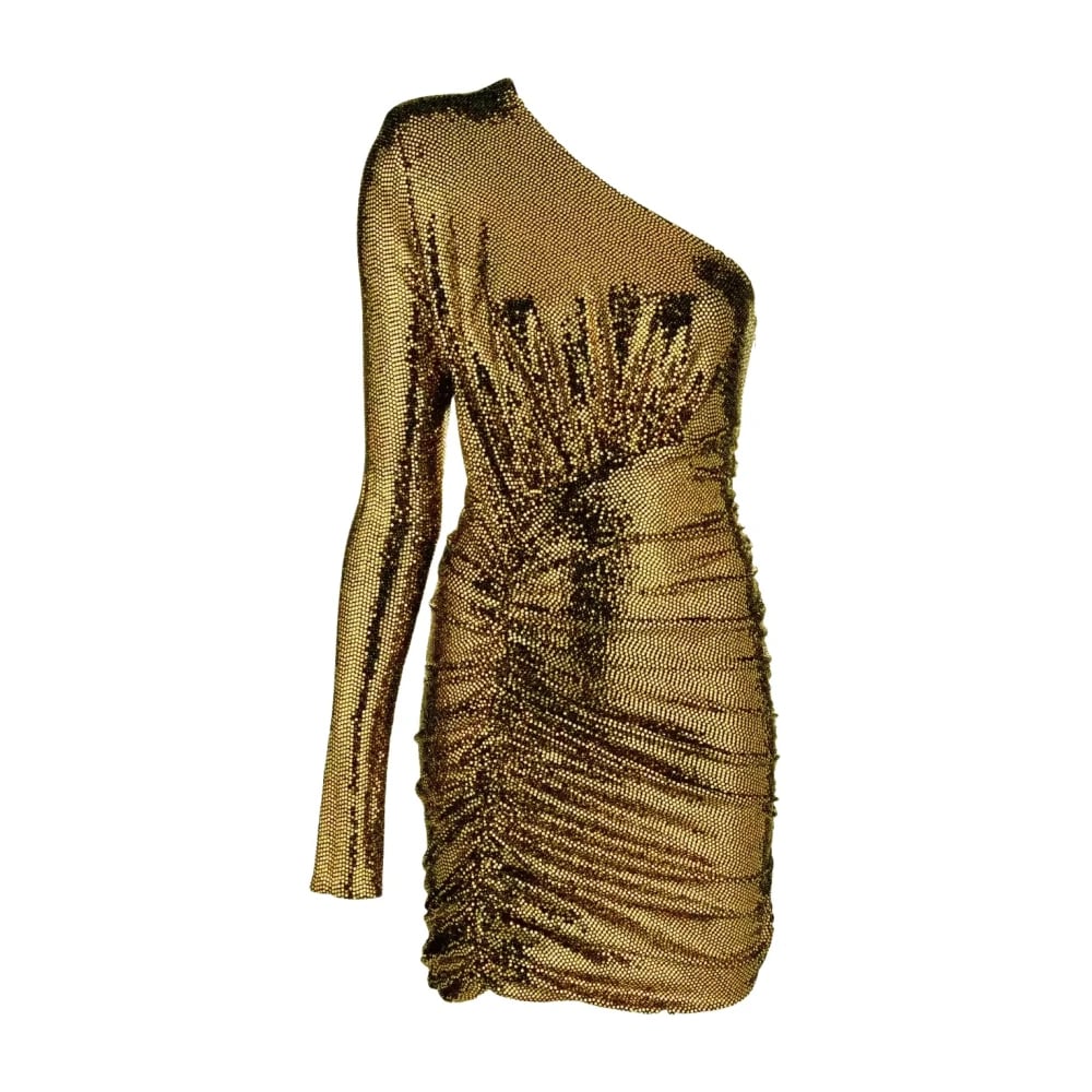 Alexandre Vauthier, Klänningar , Dam, M, Paljetter, Guld Paljett Mini Klänning Draperad Midja
