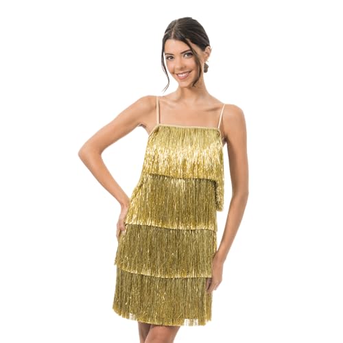 BABEYOND Damklänningar med klaffar 1920-tal V-ringad pärlfransar Great Gatsby klänning, Guld, S