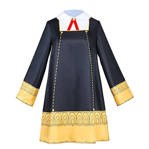 OSIAS Spy Family Anya Cosplay Outfit Anya Forger Kostym Svart Guld Klänning(S)