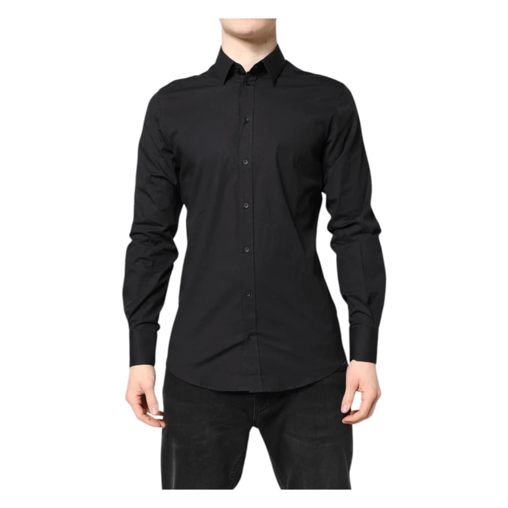 Dolce & Gabbana, Skjortor , Herr, M, Bomull, Svart Guld Bomull Klänning Formell Skjorta