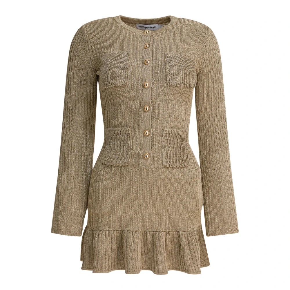 Self Portrait, Klänningar , Dam, L, Guld Lurex Stickad Klänning Aw25