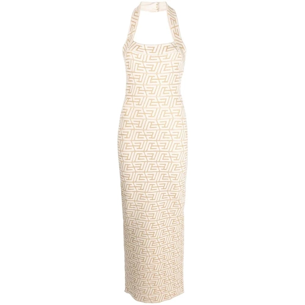 Balmain, Klänningar , Dam, M, Nylon, Elegant Guld Maxi Klänning med Halterneck