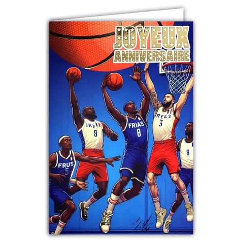 AFIE 65-1423 Happy Anniversary BASKETBALL kort i glänsande guld med kuvert 12 x 17,5 cm för sportsportspelare basketspelare basketspelare mästare korg supporter lag Frankrike
