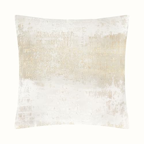 THE-TINOART Krämfärgad guld prydnadskudde överdrag 56 cm x 56 cm stänk guld kräm jacquard kuddfodral omvänd gräddvit sammet fyrkantiga kuddöverdrag för vit soffa vardagsrum sovrum bil 1 del