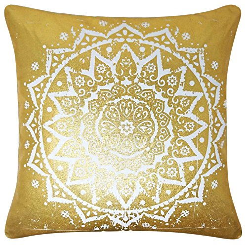 Ideal Textiles Metalliskt kuddfodral, lyxigt folietryck kuddfodral, moderna retromönster, 100% bomull prydnadskudde fodral (mandala guld)