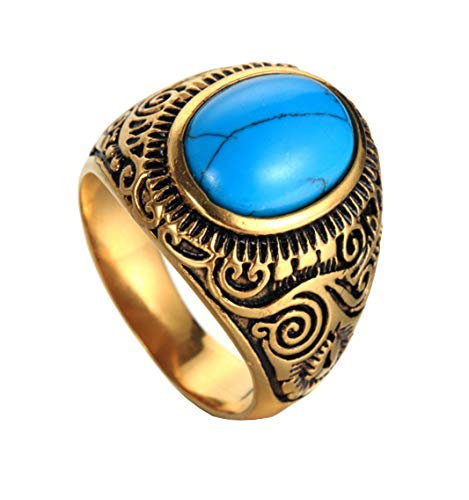 HIJONES herr rostfritt stål turkos ringar ädelsten smycken, Guld Rostfritt stål, Kubisk zirkonia