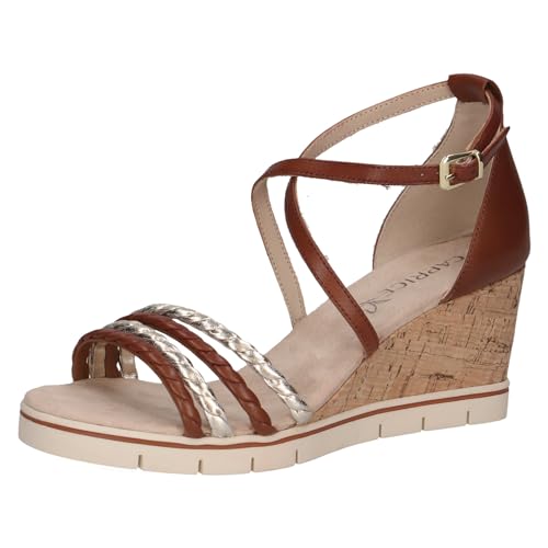 CAPRICE Dam 9-28312-42 sandaler med klack, Cognac guld, 38 EU