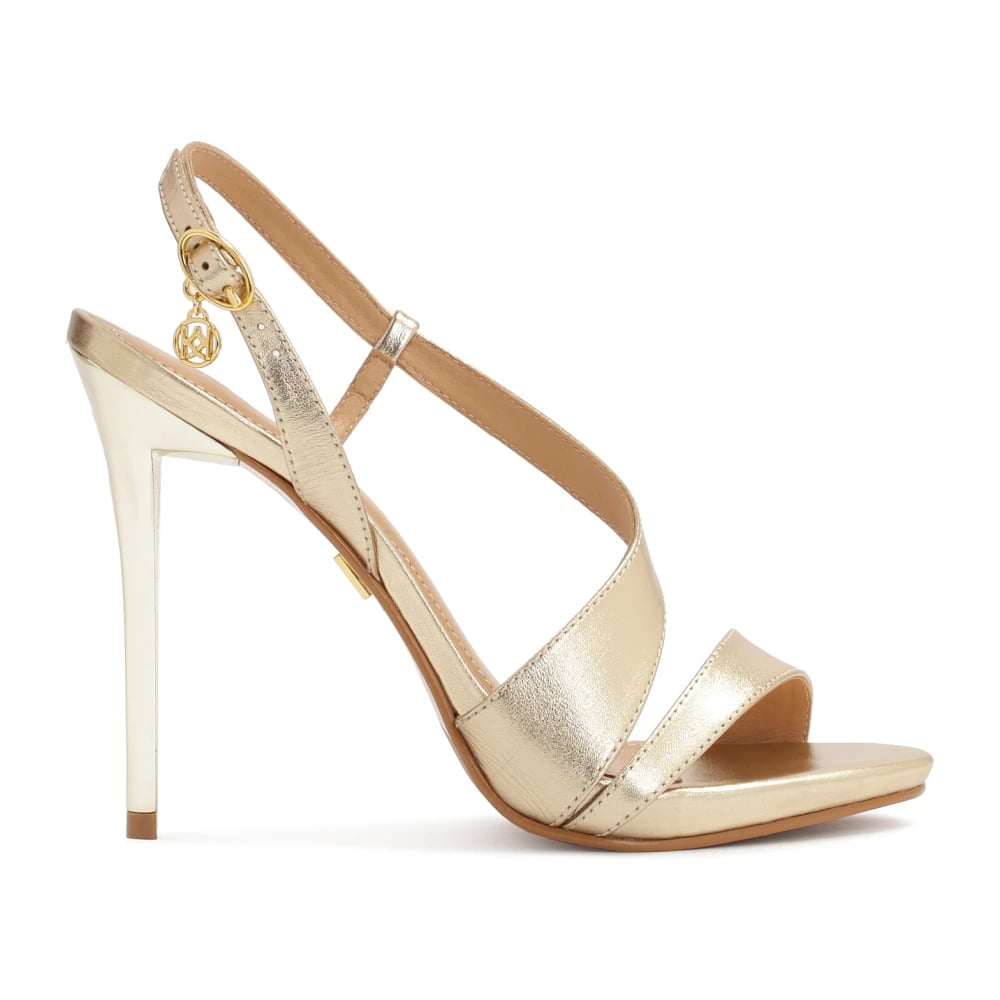 Kazar, Skor , Dam, 39 EU, Läder, Eleganta Guld Sandaler med Klack