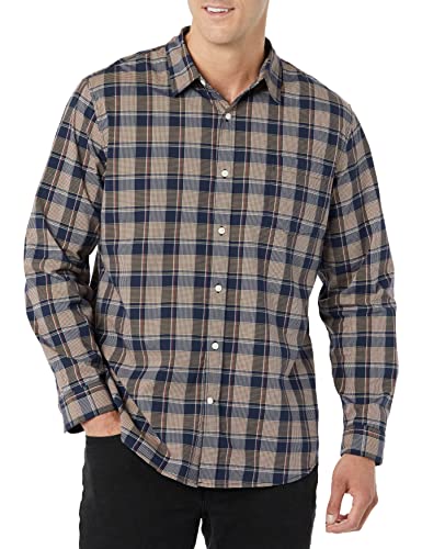 Amazon Essentials långärmad smal passform stretch poplin skjorta, guld marinblå rutig, medium