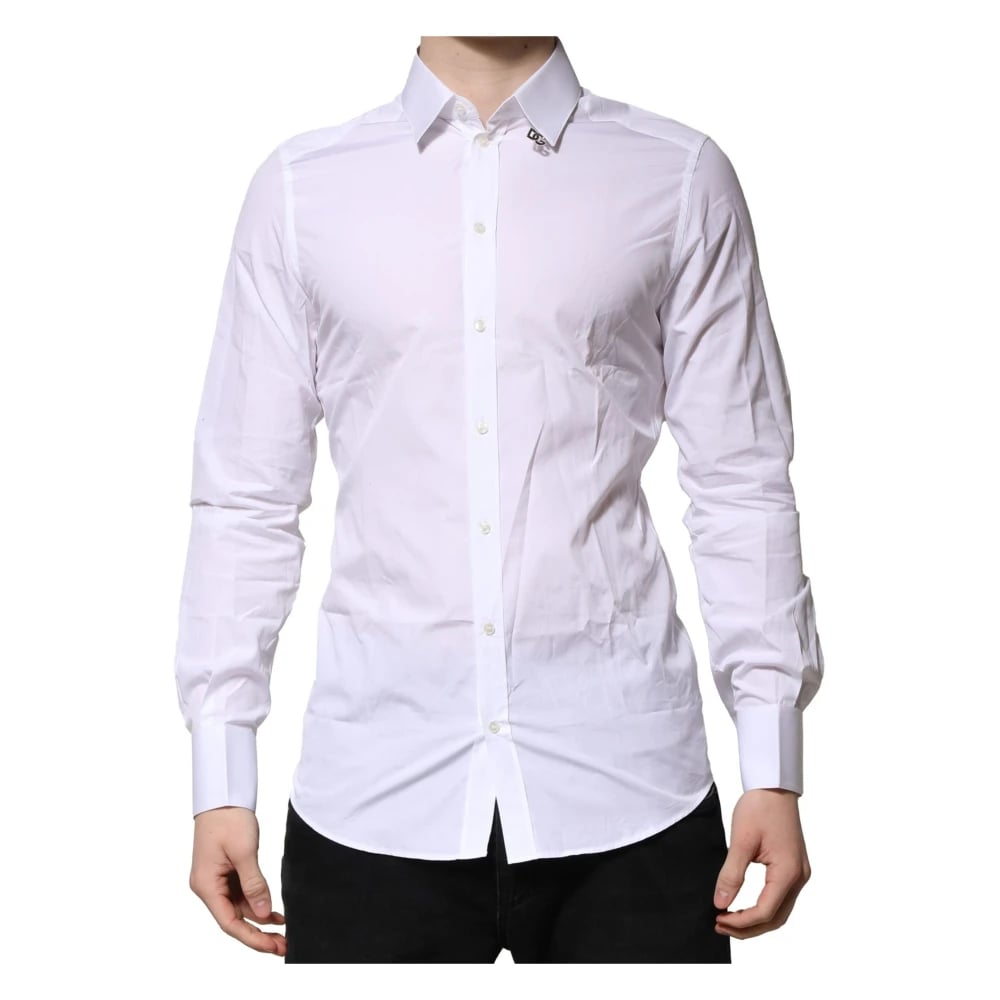Dolce & Gabbana, Skjortor , Herr, M, Bomull, Vit Guld Långärmad Skjorta