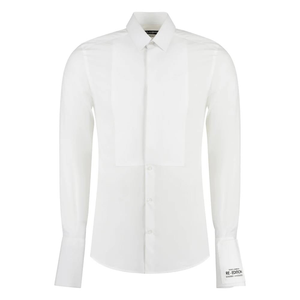 Dolce & Gabbana, Skjortor , Herr, S, Bomull, Vit Guld Långärmad Klänning Skjorta