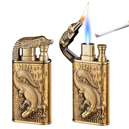 2 stycken tändare stormtändare jetflamme, dubbel jetflamme tändare, stormtändare gas påfyllningsbar, för män och kvinnor (säljs utan butangas, guld)