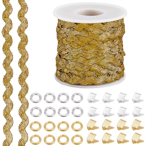 GORGECRAFT 25 m guld rickställ trim metallisk våg böjning frans trimning 5 mm ~ 8,5 mm glittrande RIC Rac tyg trim vågig kant band flätat vävt tyg för sömnad hantverk gåva julinpackning