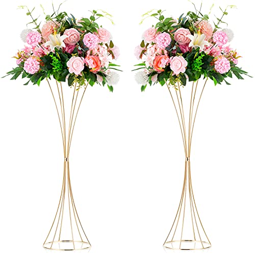 Nuptio 2 Stycken Guld Bröllop Centerpieces Bord Vas, 79cm Lång Metall Trumpet Vas, Väg Bly för Bröllopsfest Middag Mitt, Blomma Stativ för Jubileum Födelsedag Heminredning