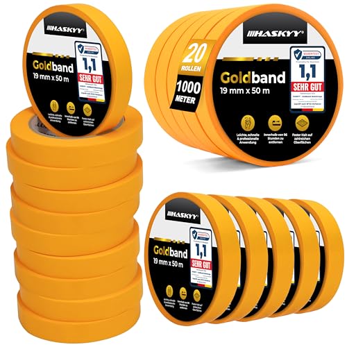 HASKYY guldband målningstejp professionell 20 x målningstejp 19 mm x 50 m tejp maskeringstejp