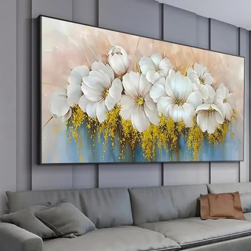 YIUEYI Abstrakt guldblad affisch skandinavisk klassisk lyxig väggkonst stor vit blommig målning tryck hem sovrum vardagsrum dekor 100 x 200 cm (40 x 80 tum) med ram