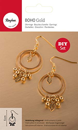 Rayher 14850616 pysselförpackning Boho-örhänge guldblad, guld, 2 stycken, längd 5 cm, örhängen pråkar