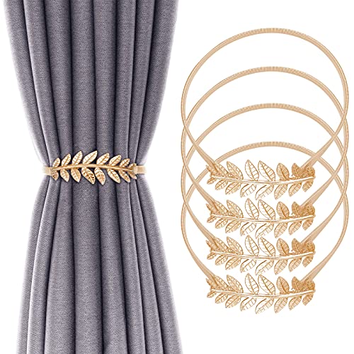 4-pack gardinbindningar aluminiumlegering vårdesign gardinomtag löv snideri design gardin slipsar för draperier gardin knytband baksida gardin modern stil gardin hållare dekor (guldblad)