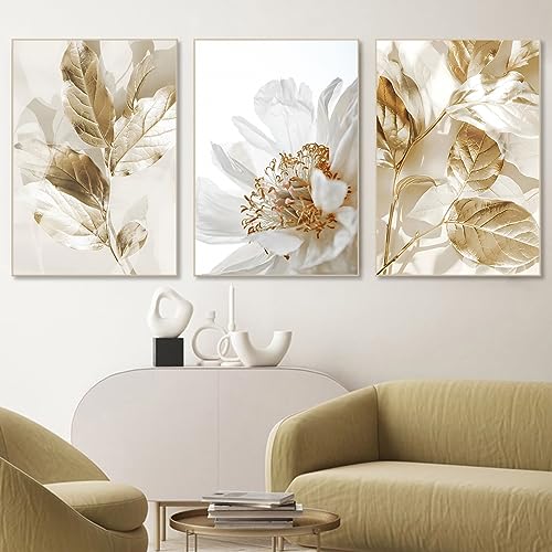 Beige botanisk väggkonst vit blomma guldblad kanvas väggkonst neutralt blad konstverk beige botaniska tryck neutral väggkonst sovrum beige väggkonst tryck beige boho växt bild väggdekor ingen ram