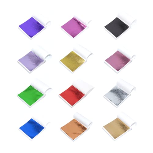 240 ark 12 färger metalliskt guldfolie bladpapper, imitation guldblad, färgimitation guldblad, guldblad för dekoration, för konstprojekt, för att dekorera förgyllda möbler, gör-det-själv-naglar,