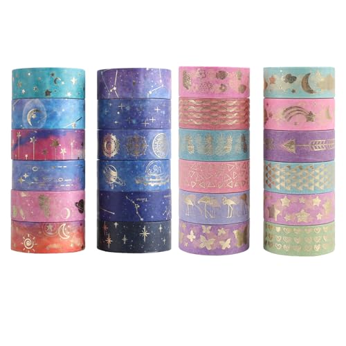 YNR Dekorativ tejp Washi-tejp vintage rullar Washi-tejp stjärnhimmel tejp maskeringstejp dekorativ tejp tryckt flermönstrade Washi-guldblad 24 rullar