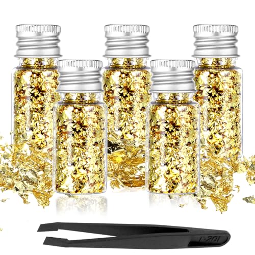 PEOVLVN 5 flaskor ätbara guldflingor, guldblad tårtdekoration guldbladslakan för matlagning efterrätt bakning guldfolie chokladdekor guldflingor för naglar konst hantverk smink