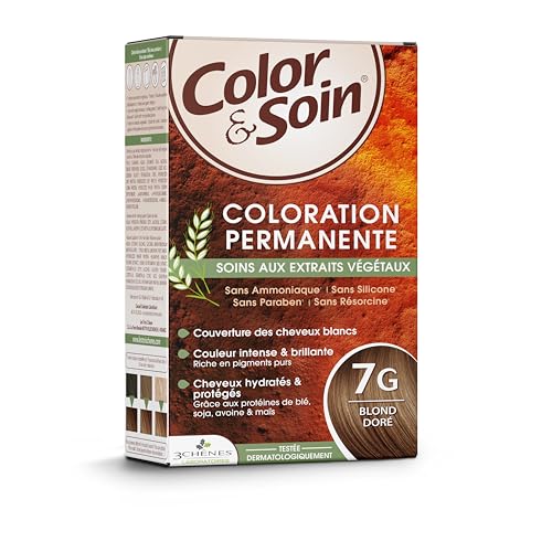 Les 3 Chênes Color & Care 7G - guldblond - permanent hårfärg för kvinnor utan ammoniak - naturlig vård för långvarig glans - täcker 100 % vitt hår