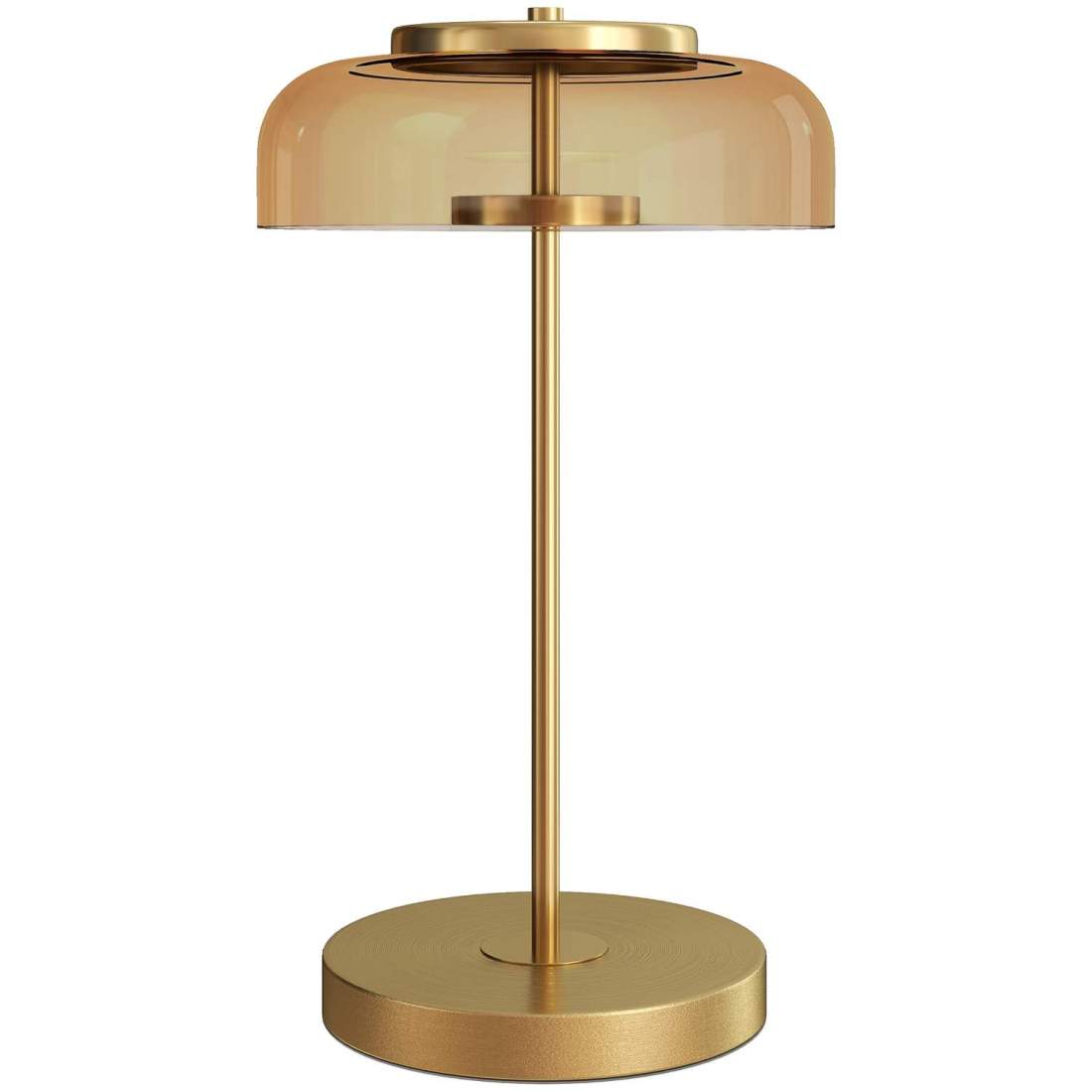 Bärnstensfärgad LED-bordslampa i glas – Varmt ljus, guldfärgad bas, Ø23x40 cm