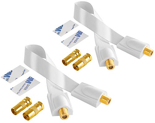 Poppstar 2 x 28 cm SAT fönstergenomföring/antennkabel för fönstergenomföring (extremt tunn 0,2 mm) 4 xF-kontakt, guldpläterad, (2x till antennkontakt, 2 x till antennuttag) 4 vidhäftande dynor, vit