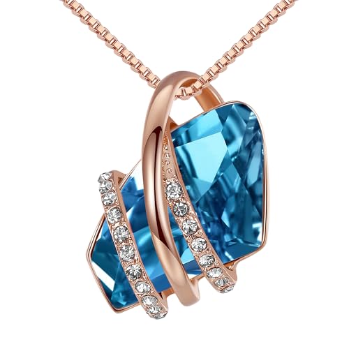Leafael Önskar Stenhänge halsband med blå zirkon födelsesten kristall för december, 18K rosa guldpläterad, 18 "+ 2" kedja
