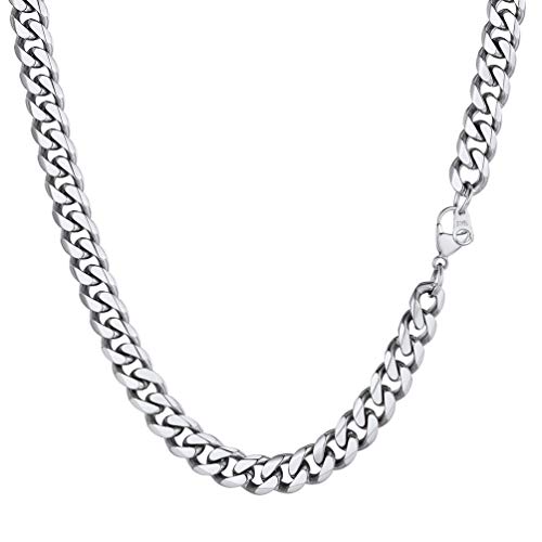 PROSTEEL Män robust kubansk kedja, bredd: 3/6/9/12 mm, längd: 35,5 cm, 45,7 cm, 50,8 cm, 55,9 cm, 61 cm, 66 cm, 71,1 cm, 76,2 cm, guldpläterad/316L rostfritt stål/svart (inpackad) e rostfritt stål, colore: 9 mm - rostfritt, cod. PSN4425G-9-20-EU