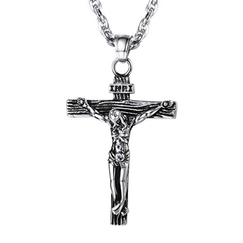 PROSTEEL INRI krucifix korshalsband för män med kedja – 55 + 5 cm, guldpläterad/316L rostfritt stål/svart (med presentask), Rostfritt stål, Ingen sten