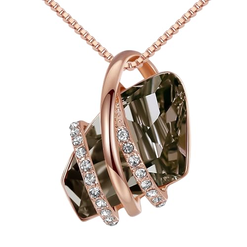 Leafael Önskar Stenhängehalsband med silversvart läkningskristall för skydd, 18K rosa guldpläterad, 18 "+ 2" kedja