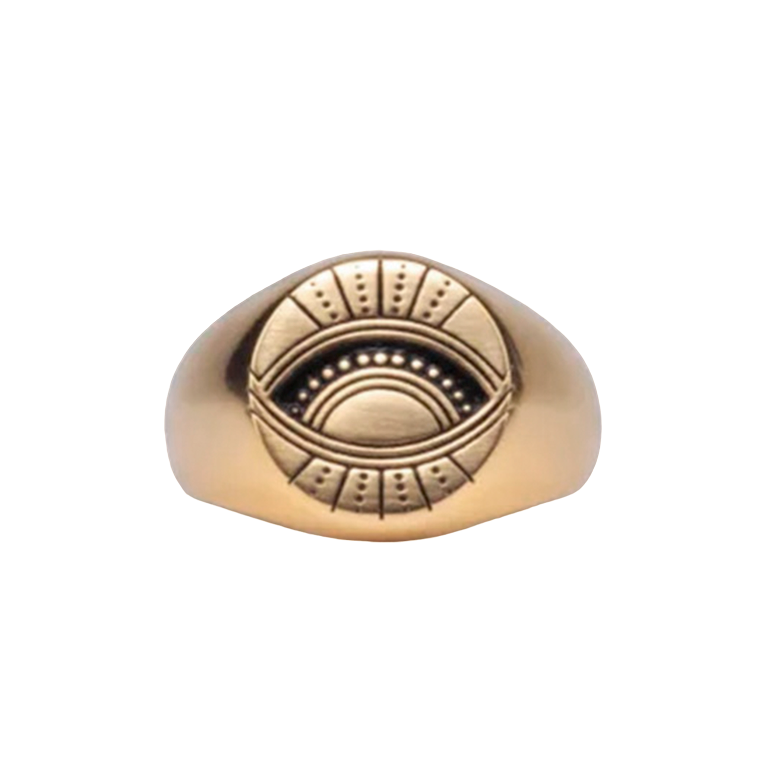 IX Studios Cushion Signet Ring Hawks Eye förgylld-Storlek 52 Unisex