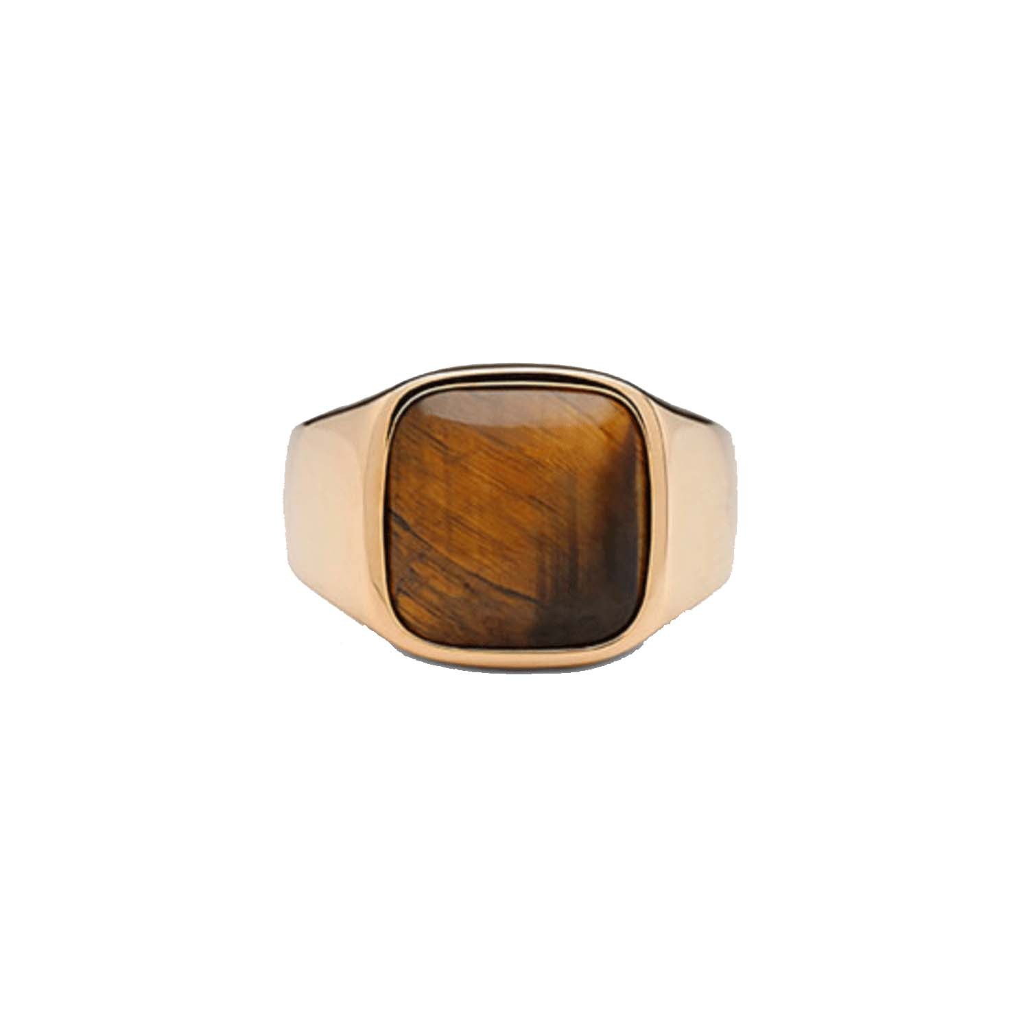 IX Studios Cushion Signet Tiger Eye Ring 22 kt. Guldpläterad Silver DMN0282GDTE--50 - Unisex - 925 Sterling Silver