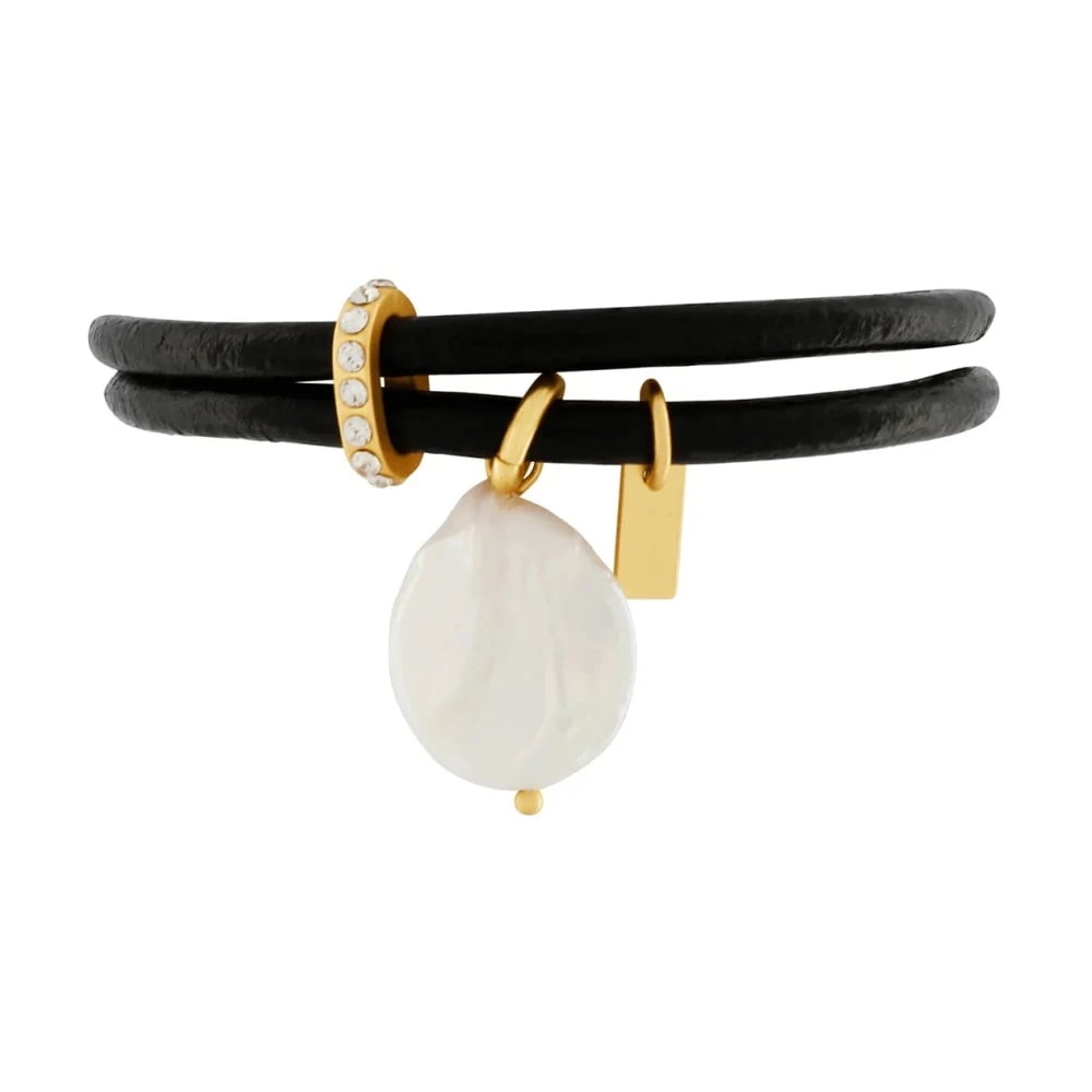Dansk Copenhagen, Accessoarer , Dam, ONE Size, Läder, Pärl läderarmband med guldplätering