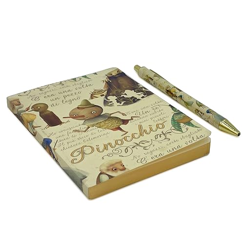Magicamente Carta Set med 2 anteckningsböcker, 8,5 x 12,5 cm, 30 blad, dekoration i guldpulver, mockapapper. Mönster: The Adventures of Pinocchio