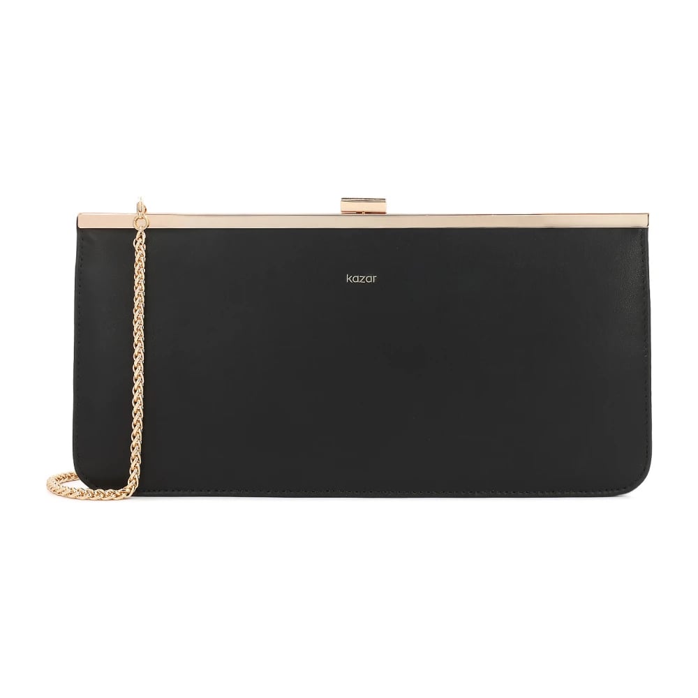 Kazar, Väskor , Dam, ONE Size, Läder, Elegant svart clutchväska med guldram